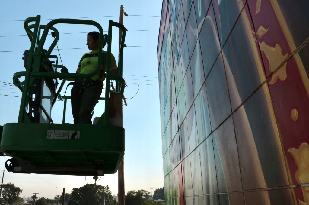 In addition to designing and painting representational public art, Myisha’s technical abilities range from conservation to aging techniques. She has participated in the conservation and restoration of over 20 landmark murals across L.A. through SPARC’s innovative conservation efforts. As a scenic painter, she uses aging and deterioration creatively as elements of storytelling.