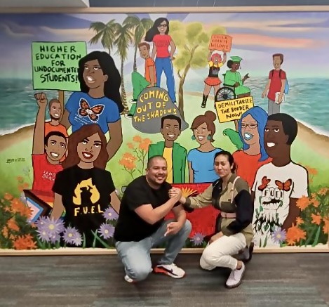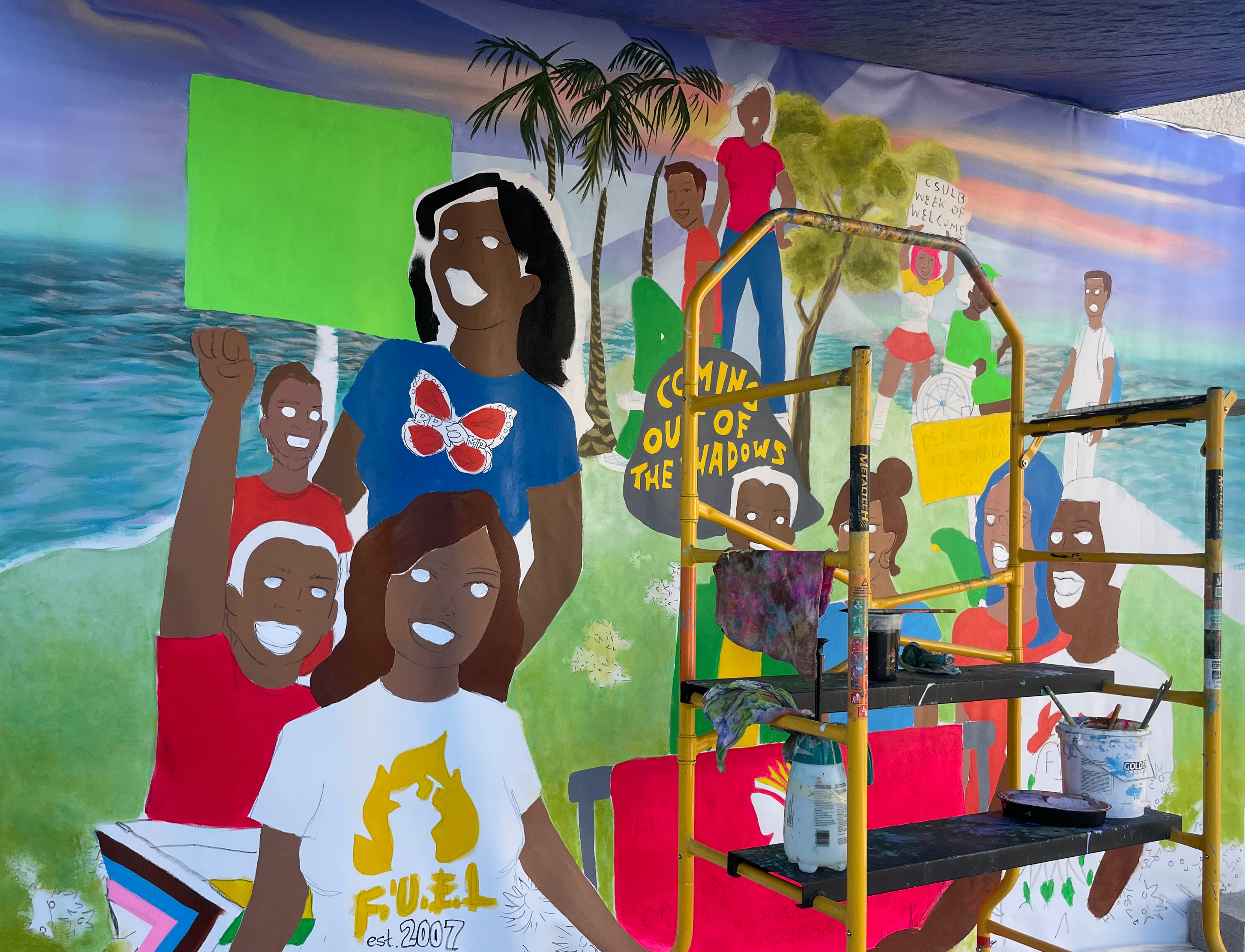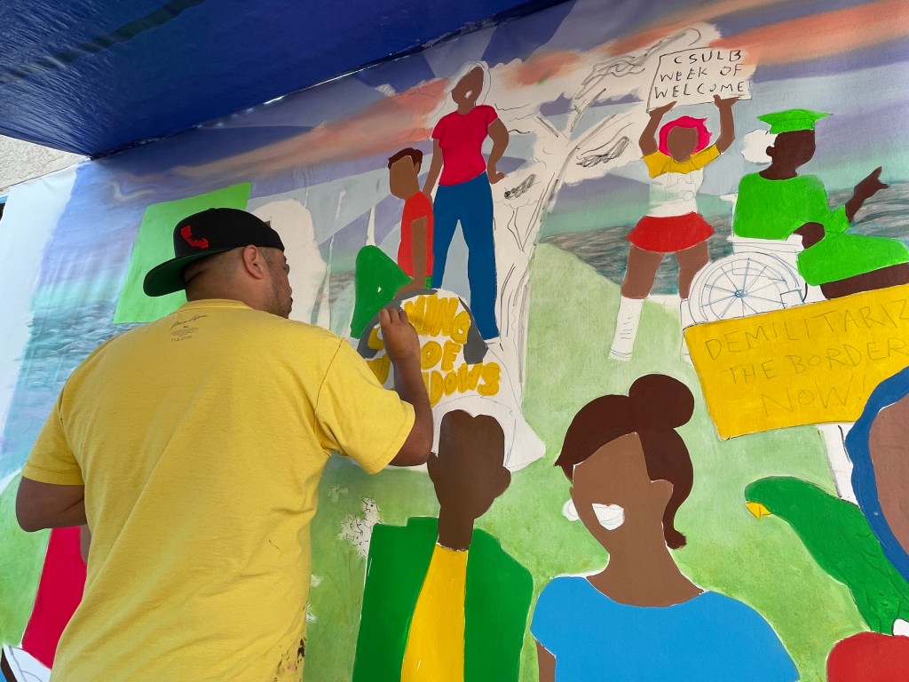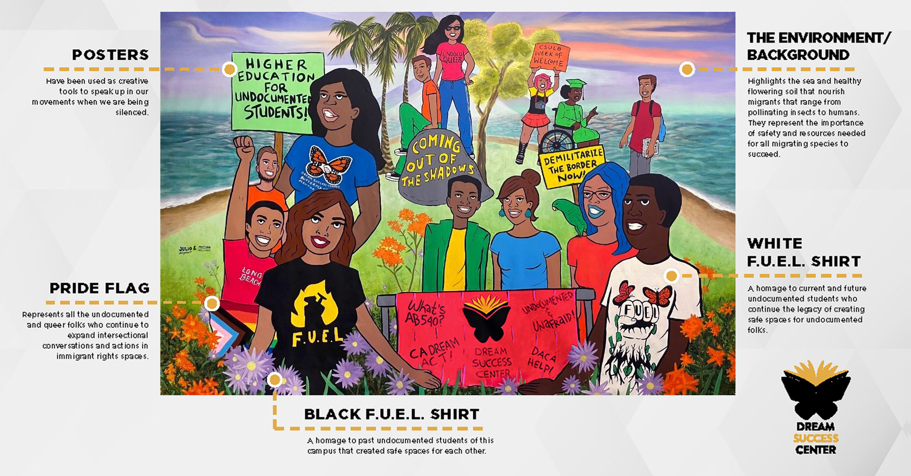 A Homage to the Undocumented Student Designed and painted in collaboration with Julio Salgado completed 2022 Project by the Dream Success Center at CSULB “Dream Success Center aids undocumented students” “These immigrant artists highlight undocumented students with a new mural at CSULB”